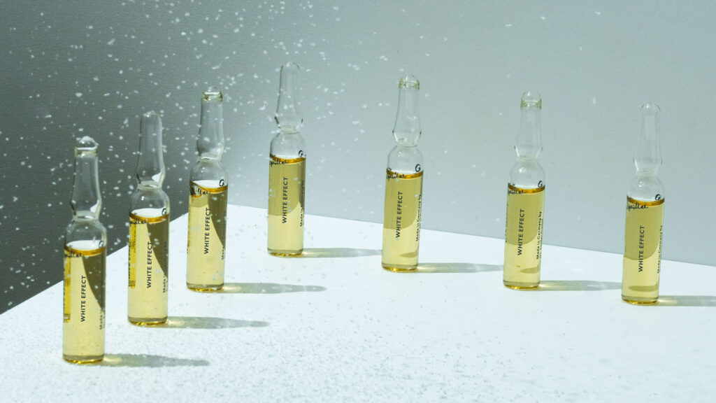 Dentro deste contexto, as ampolas aquosas assumem um papel central nos protocolos de mesoterapia sem agulhas. A Ampola White Effect é um exemplo de formulação desenvolvida com foco na uniformização progressiva do tom, ação antioxidante e suporte ao controle da melanogénese, apresentando um veículo tecnicamente compatível com tecnologias como eletroporação e ultrassom.