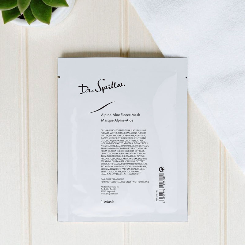 Máscara Fleece Aloe Alpine – tecnologia de veiculação intensiva, que promove hidratação profunda, melhora a microcirculação e ajuda a uniformizar o tom cutâneo.